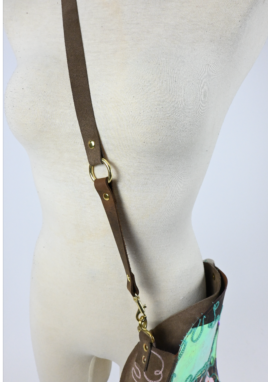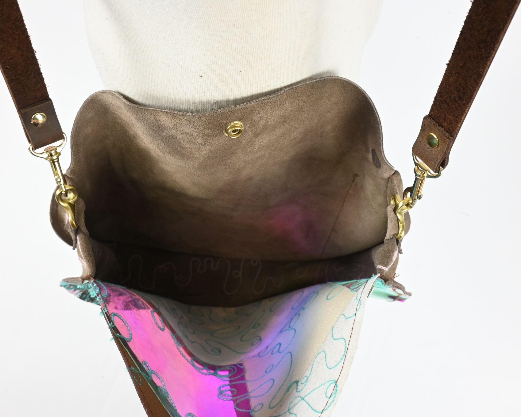 This scrap bag was made by Dan in Seattle, WA using repurposed materials. It is 1 of 1 and unique. Chain-stiched with a 1920's vintage Singer sewing machine.