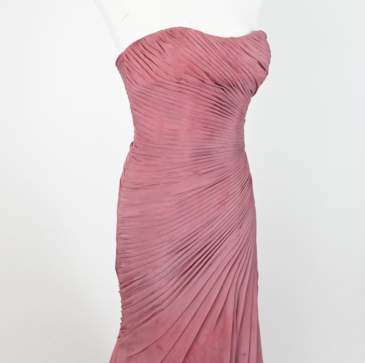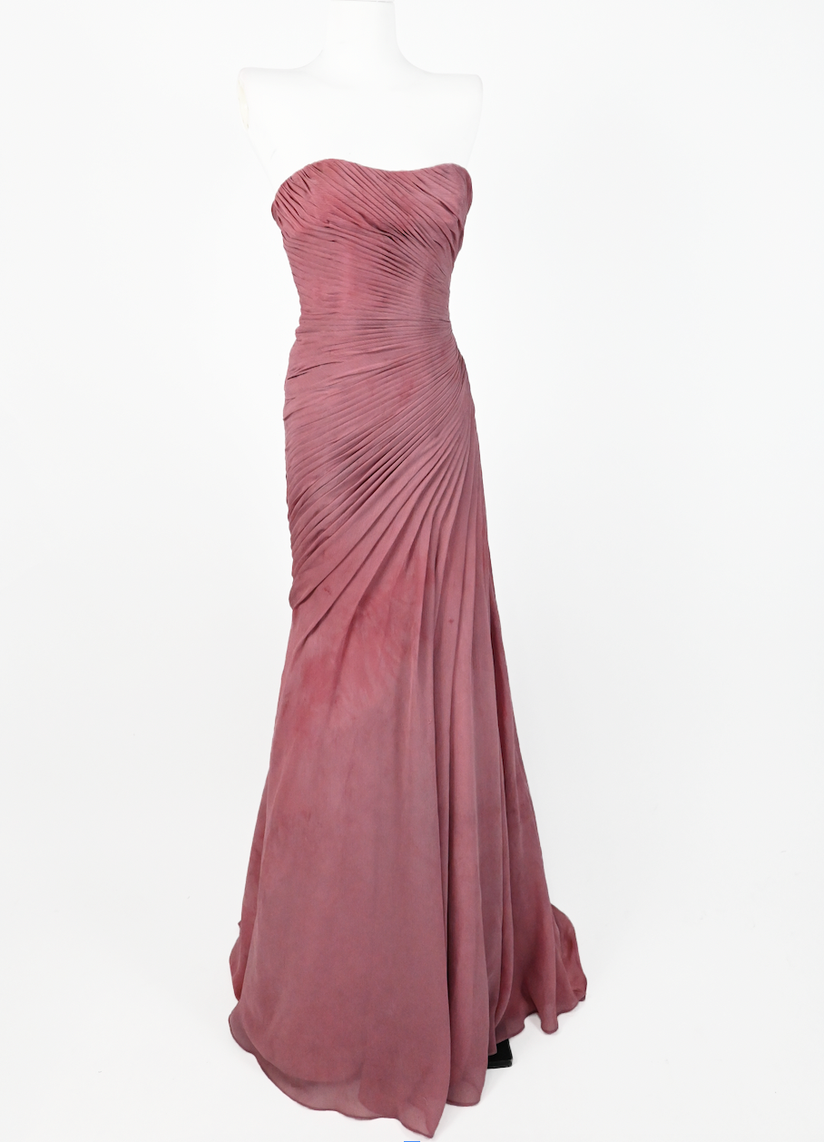 This stunning re-worked gown was seen on Ariam on the runway! It is 1 of 1 and will never be made again. Re-worked Davids Bridal gown has a corset top with boning and a very very unique dye pattern.