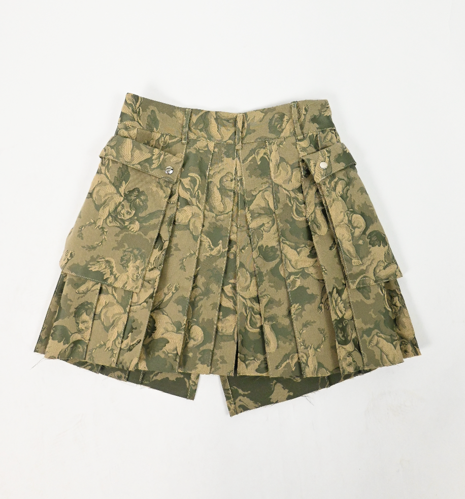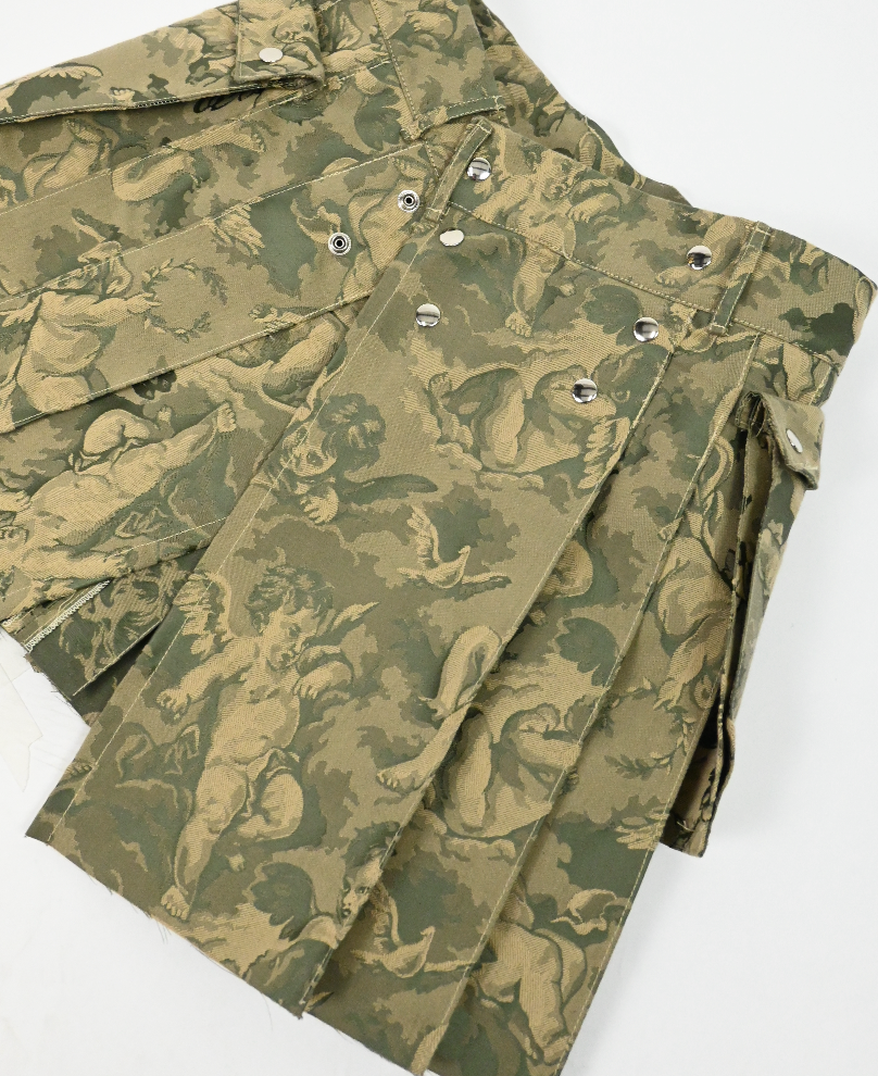 Made from the yummiest vintage upholstery fabric, this skirt is 1 of 1 and wont be made again. Details are large cargo pockets, and a decorative snap waist band.